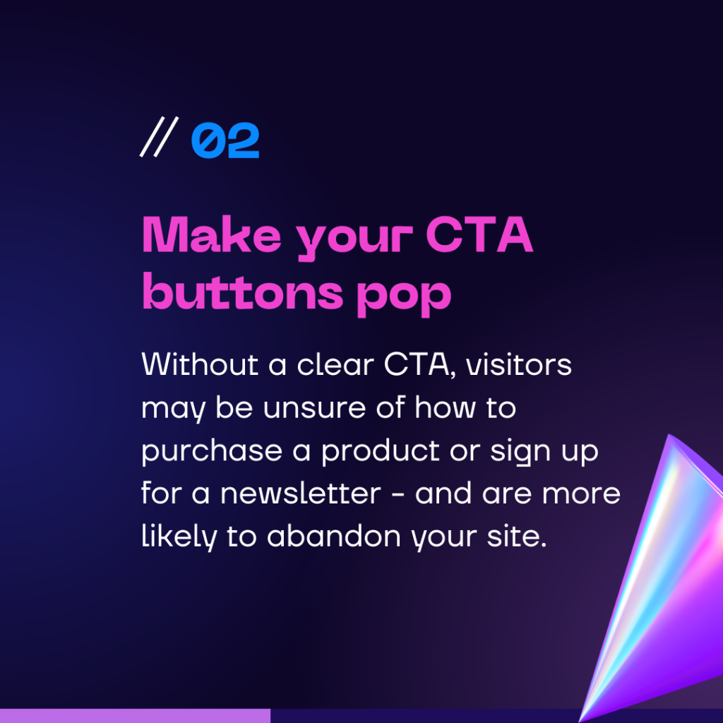 Without a clear CTA, visitors may be unsure of how to purchase a product or sign up for a newsletter – and are more likely to abandon your site.
