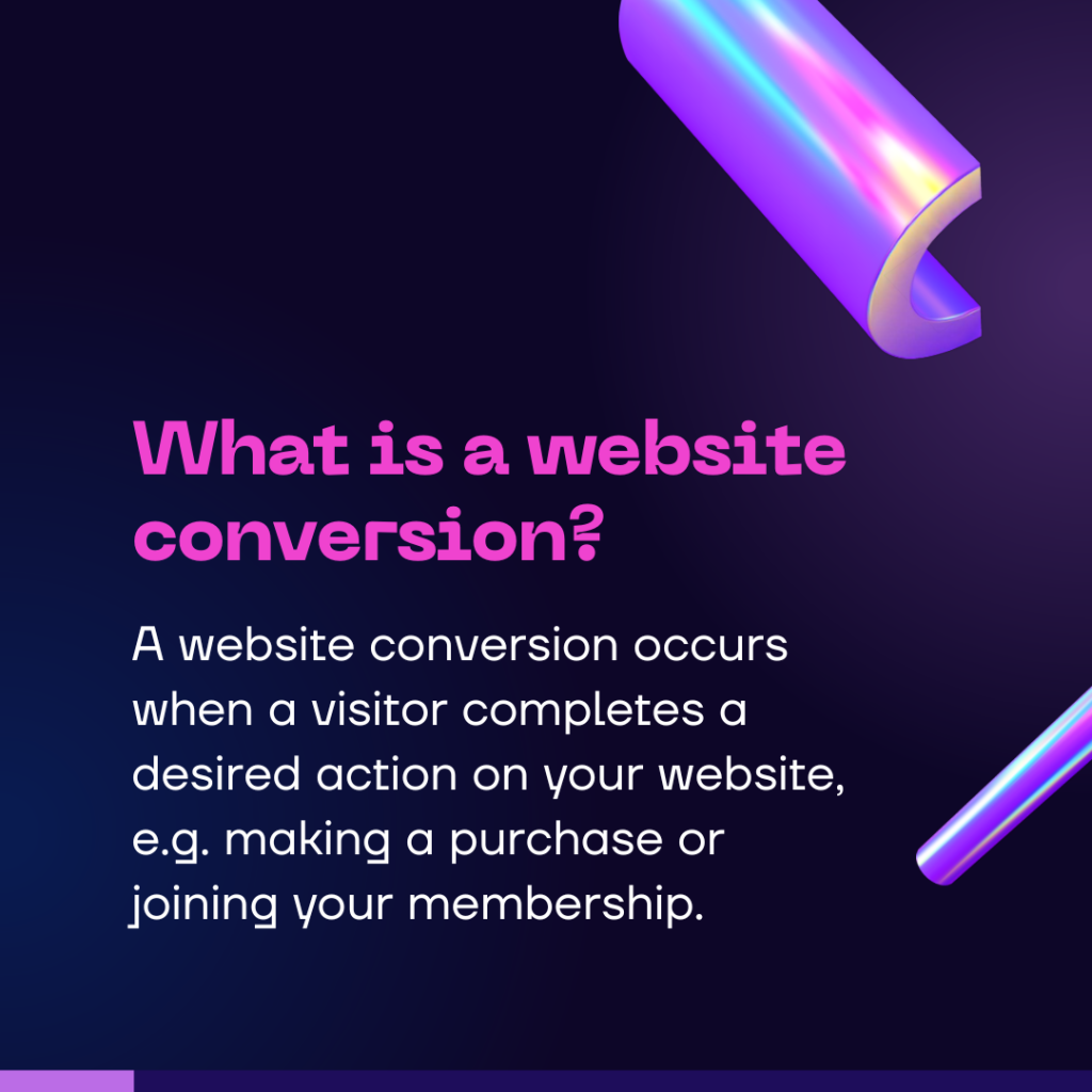A website conversion occurs when a visitor completes a desired action on your website, e.g. making a purchase or joining your membership.
